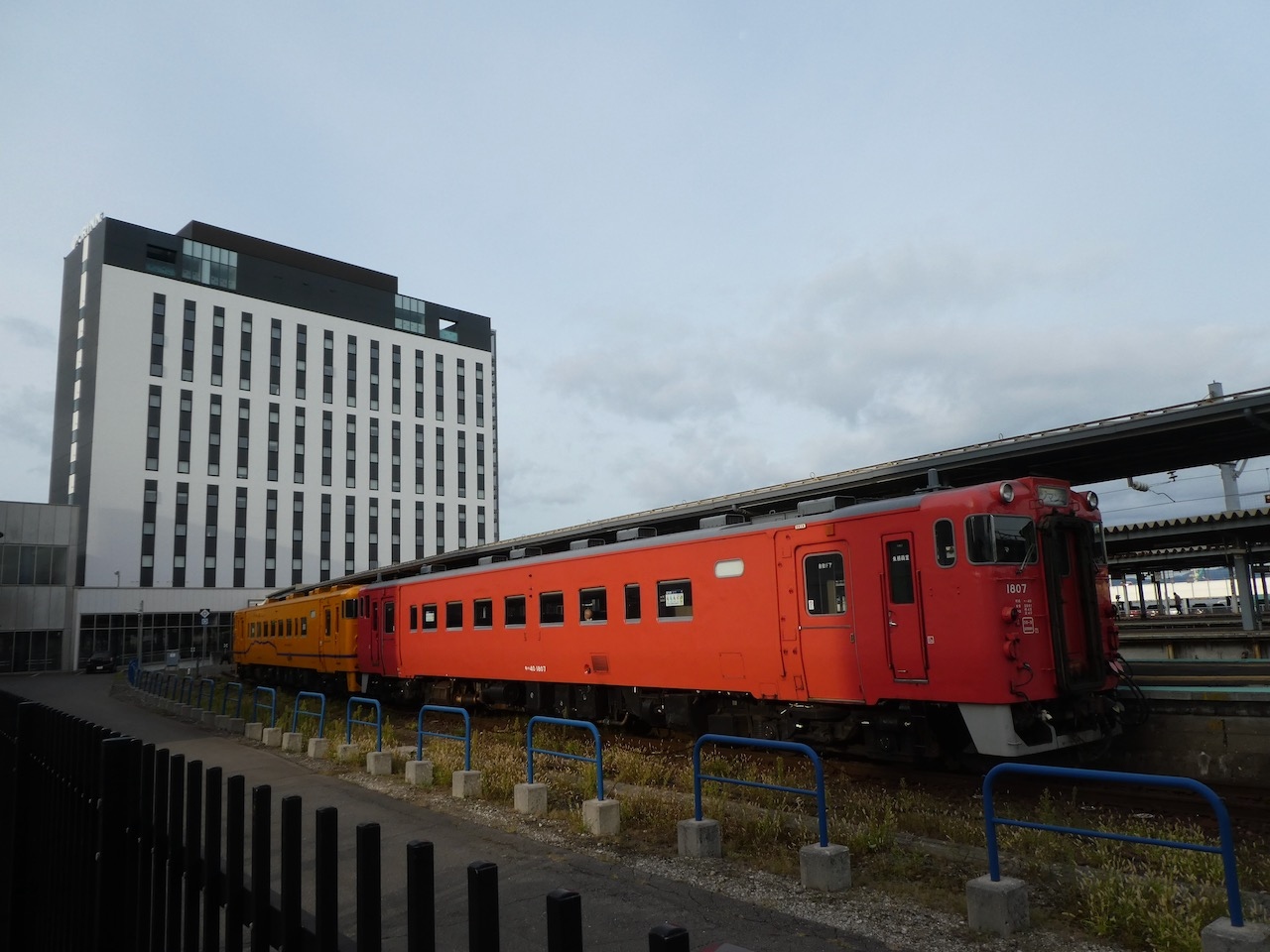 ターミナル形式の駅のホームの端っこに建っています。なので半分の部屋はトレインビュー。反対側は函館山が見えます。そして港にむかって直角に建っているので海も見えます。駅舎から直結でドアを開ければホテルへ。すばらしい立地です。お部屋もまあまあ広く、テーブルの椅子の片方はソファーで座り心地のもいいです。