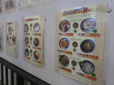 嬉しいことに500円の丼が6種あります。味噌汁もつくし、100円でご飯大盛りにもできるので、朝食に便利です。