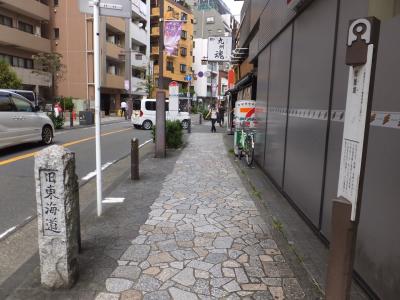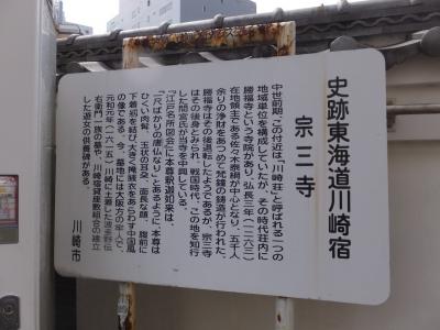旧東海道の川崎宿の街歩き。当時の建物は何も残ってないので案内板頼りです。この中の本陣あとは看板がものすごく小さく、柱のみ。3つあった本陣の跡地の案内板が絵入り・写真入りなのに比べてすごく簡素。なんと江戸後期には廃業していたのだとか。まあ、江戸と川崎の間は歩いても4〜5時間でしょうからこの近距離では宿泊業だけでは商売はなりたたなかっただろうなあ、とは思います。