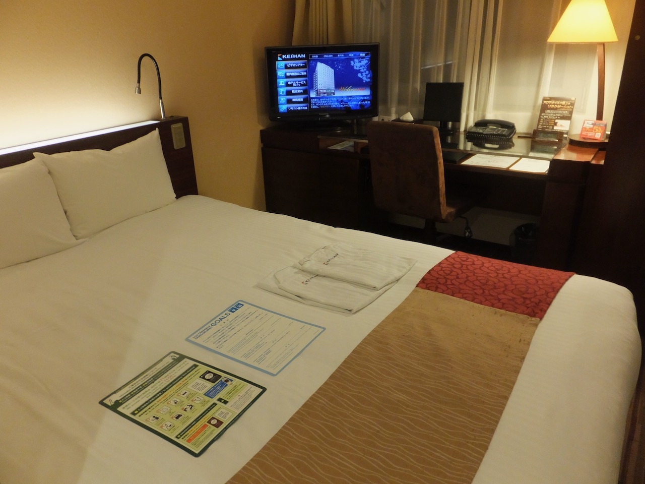 さて、関西の電鉄系のホテルは東京では目新しいです。ロビーに京阪電車の月刊フリーペーパーがあってこれは部屋での読み物に重宝しました。