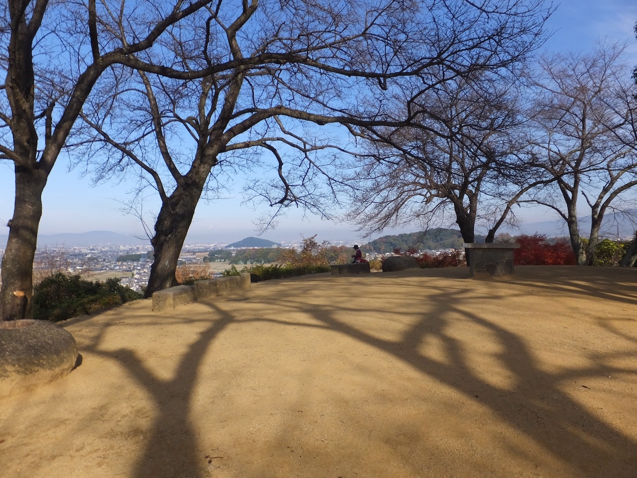 奈良盆地の南端、飛鳥の中心地の西側の小高い丘の北の突端です。場所柄素晴らしい展望台です。大和三山が一望。西側はちょっと木陰に入りますが飛鳥寺をはじめ飛鳥の中心地。見事です。