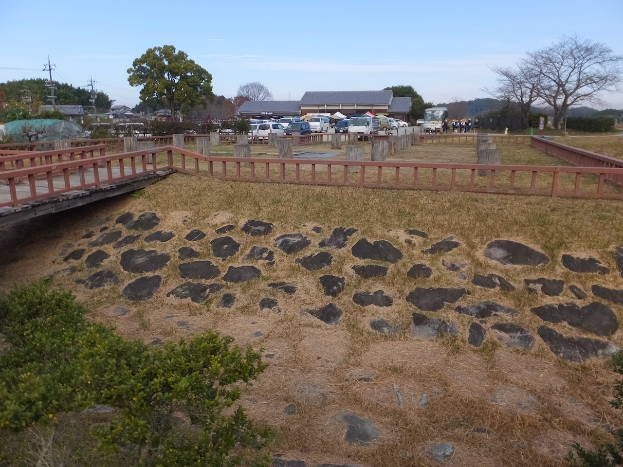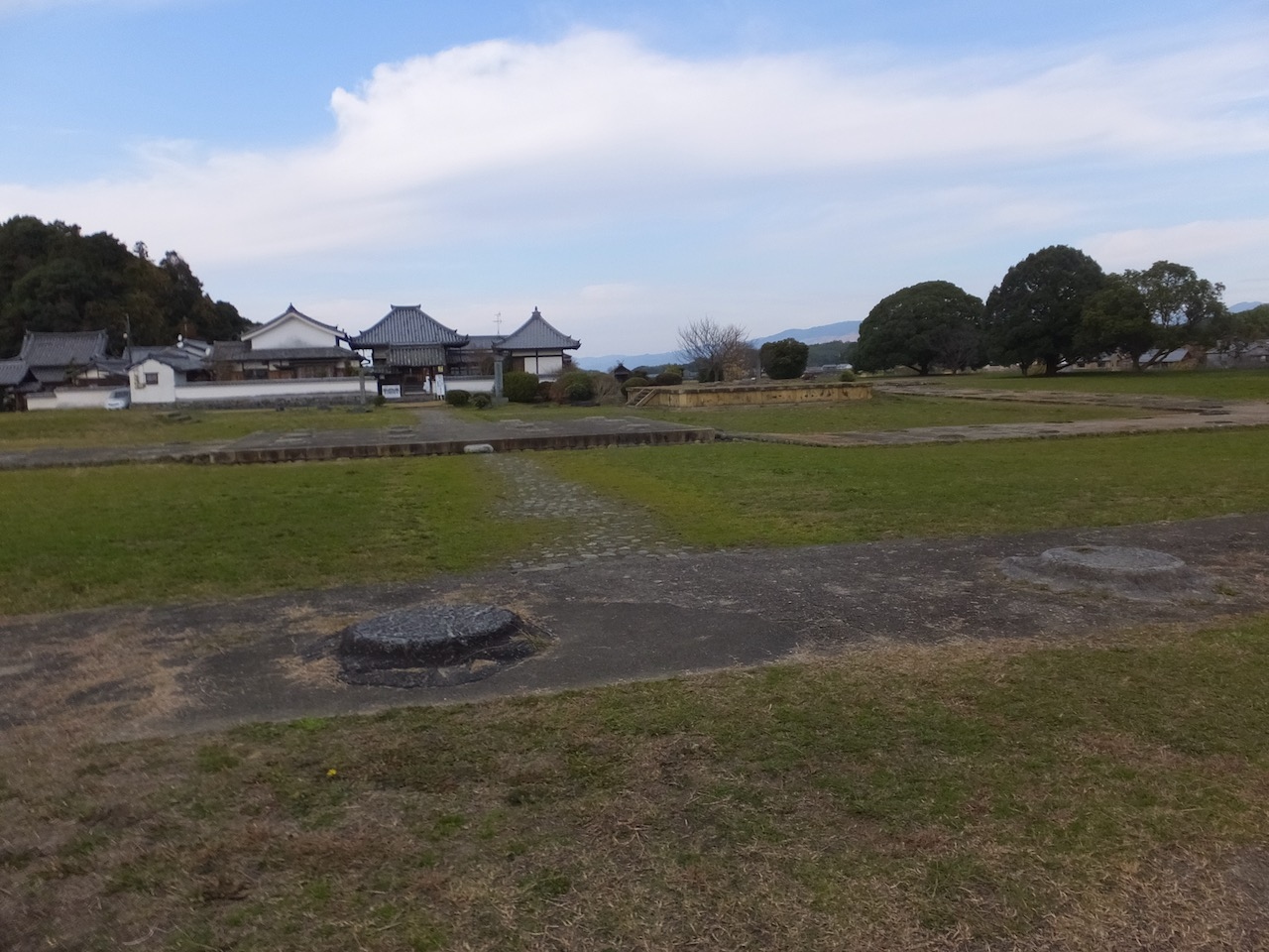 立札がひとつ。そして石の敷き詰められた空き地。ところどころに遠望できる建物跡と思われる礎石。
