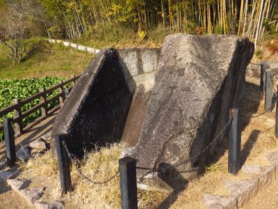 俎の方はもとあった古墳の位置ですが、雪隠の方は坂を転がり落ちて仰向けになった状態です。周囲の壁が小便器の周囲の壁に見える、ということでしょう。楽しいネーミングです。
