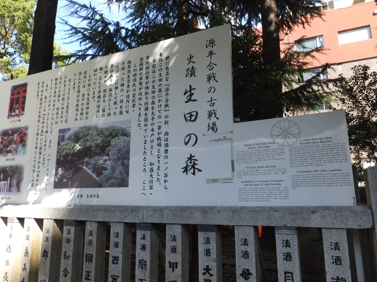 源平合戦の一谷の戦いは神戸から須磨にかけて。この生田神社のあたりも戦場だったのですね。源氏方の梶原景季がこの井戸の水をすくって戦勝祈願したという言い伝えの井戸です。このあたりは平家が陣をはった場所だと思うので、戦いがかなり進んでからでしょうか。史実はともかく、その時代のことを考えることができる伝承のなにかはいつまでも残って欲しいものです。