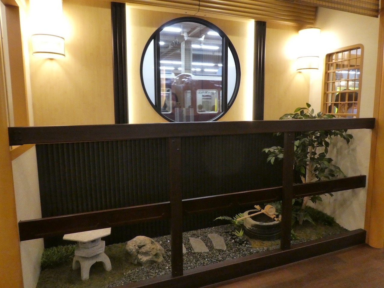特別料金がかからないのはすばらしいです。そしてなんと石庭がある車両まで。
