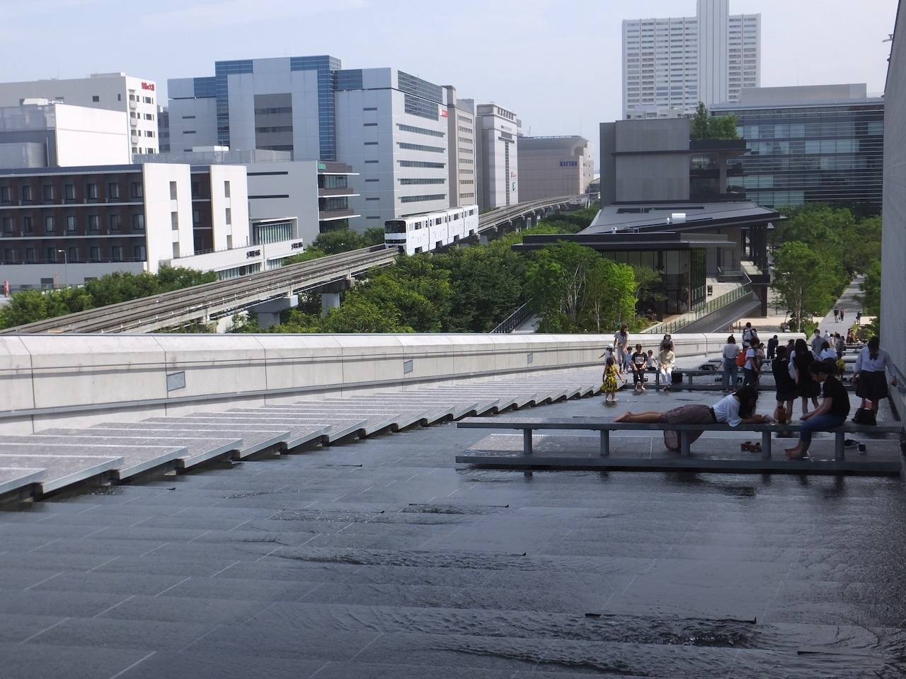 立川駅の北、IKEAの手前にできた複合ショッピングビル。階段を登ると屋上が庭園。川が流れ池があって、ここが地表じゃないことを忘れそう。おまけにその先には3階分くらいの階段があってそこが水が流れ滝になってます。子供や高校生が水に入って遊んでます。その向こうをモノレールがゆく。のどかな風景。散歩だけでも行く価値のあるビルです。コンサートホールやホテルもある複合施設なのですが、それらは未体験です。