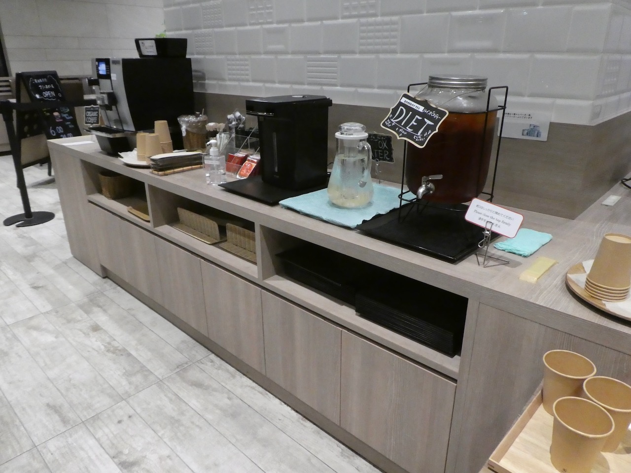 1階にウェルカムドリンクでコーヒーとレモン水があって暑いときにはほっと一息でうれしかったです。