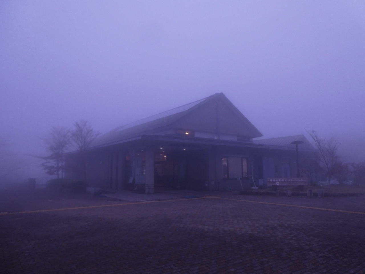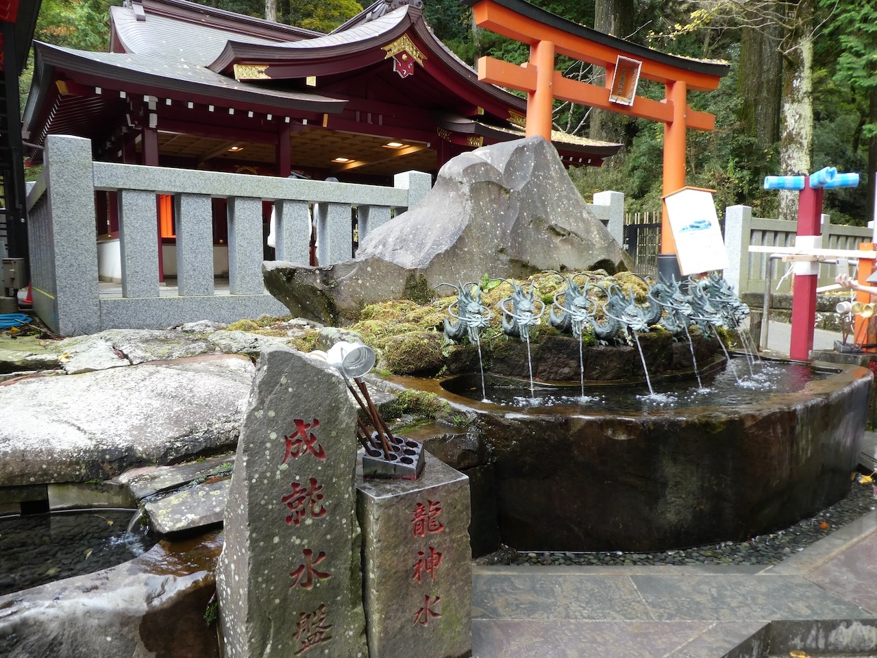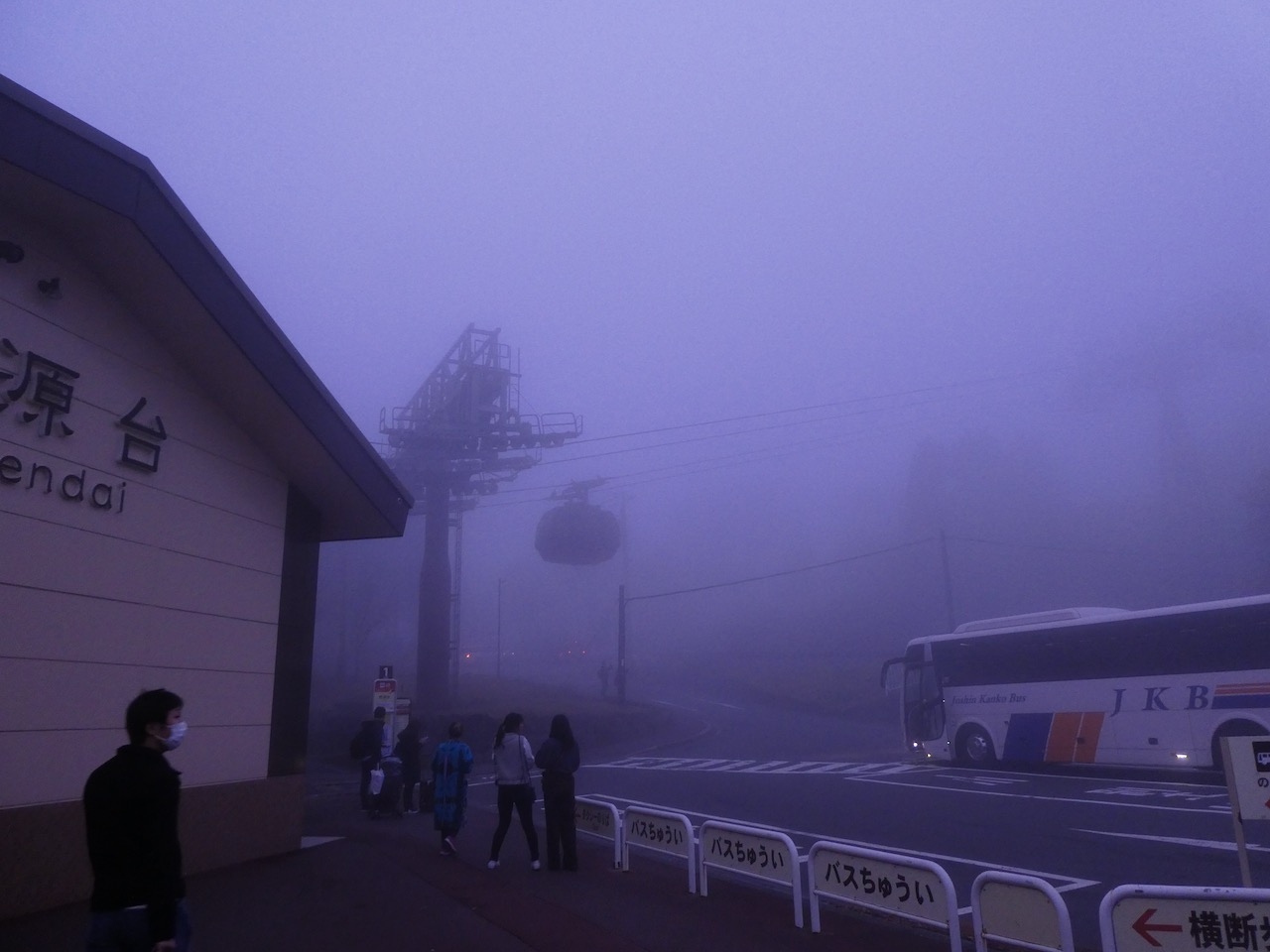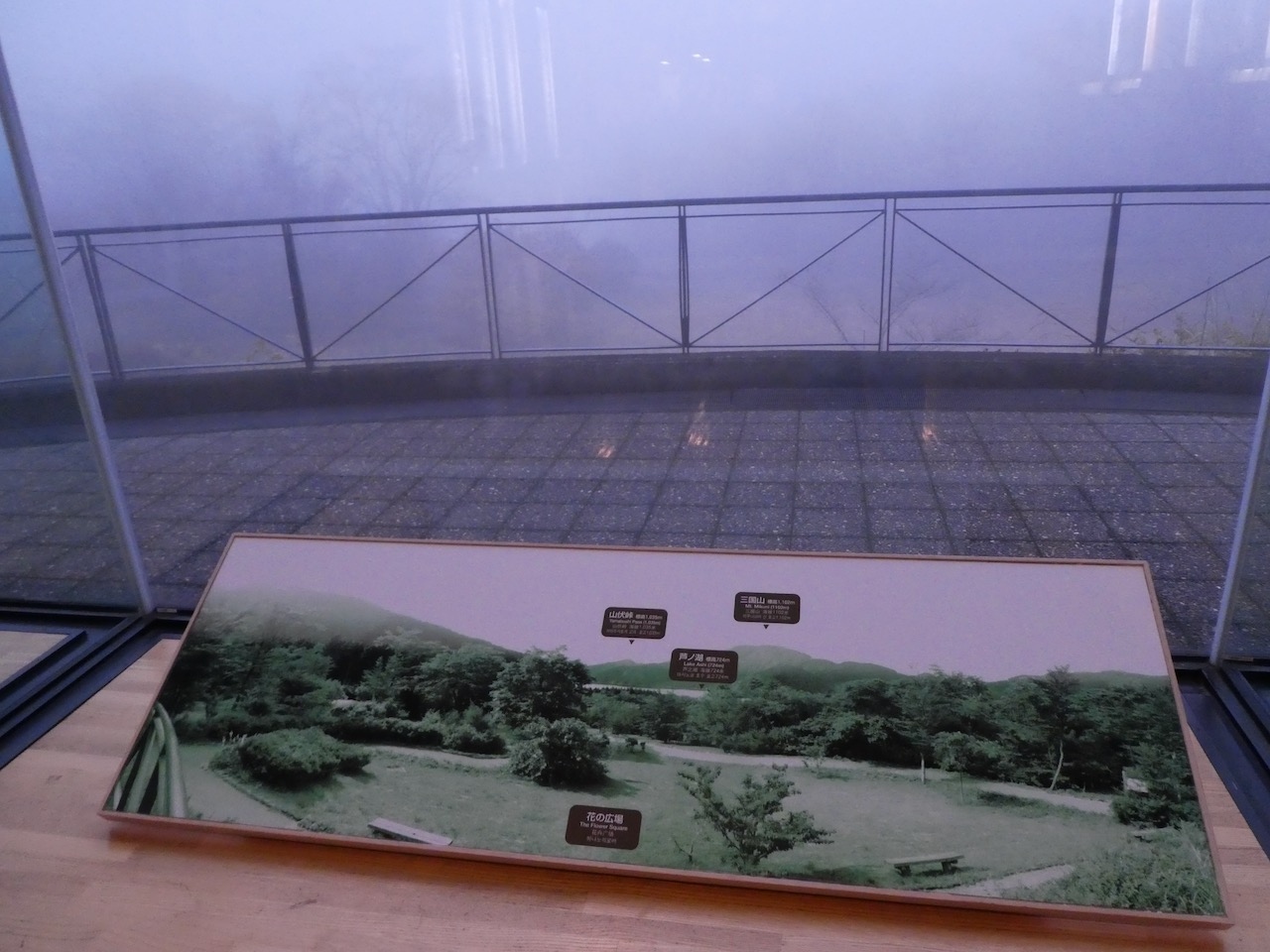 霧の夕刻に訪問。農務だったので、せっかくの芦ノ湖の景色が眺められず残念。
