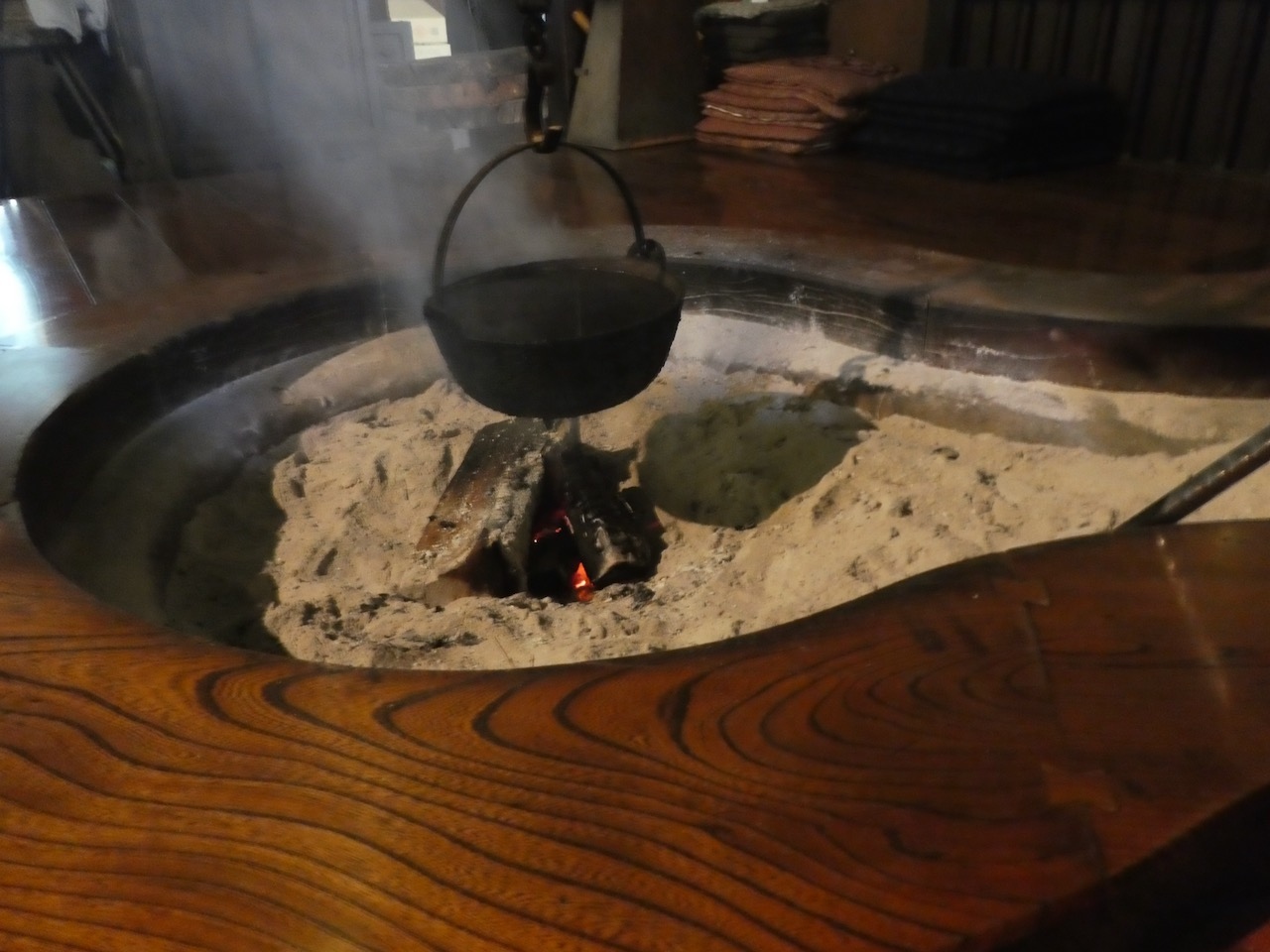 今回は軽い食事というか茶菓。力餅のゴマシオ。500円です。お茶といっしょに囲炉裏で。と、けっこう蒸されてしまいました。雰囲気はよかったです。奥にテーブル席もあったので、そちらもいいかも。