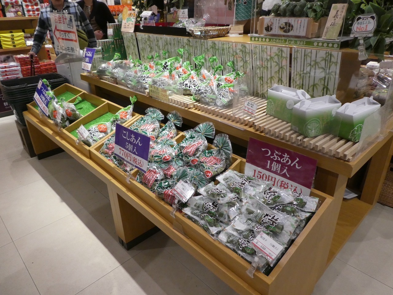 笹団子だけを集めた一角が人気です。お店ごとに番号が振ってあって、食感や味の方向性が図で表示してあって、値段の比較もできるという親切さ。各社協力してないとできないワザです。