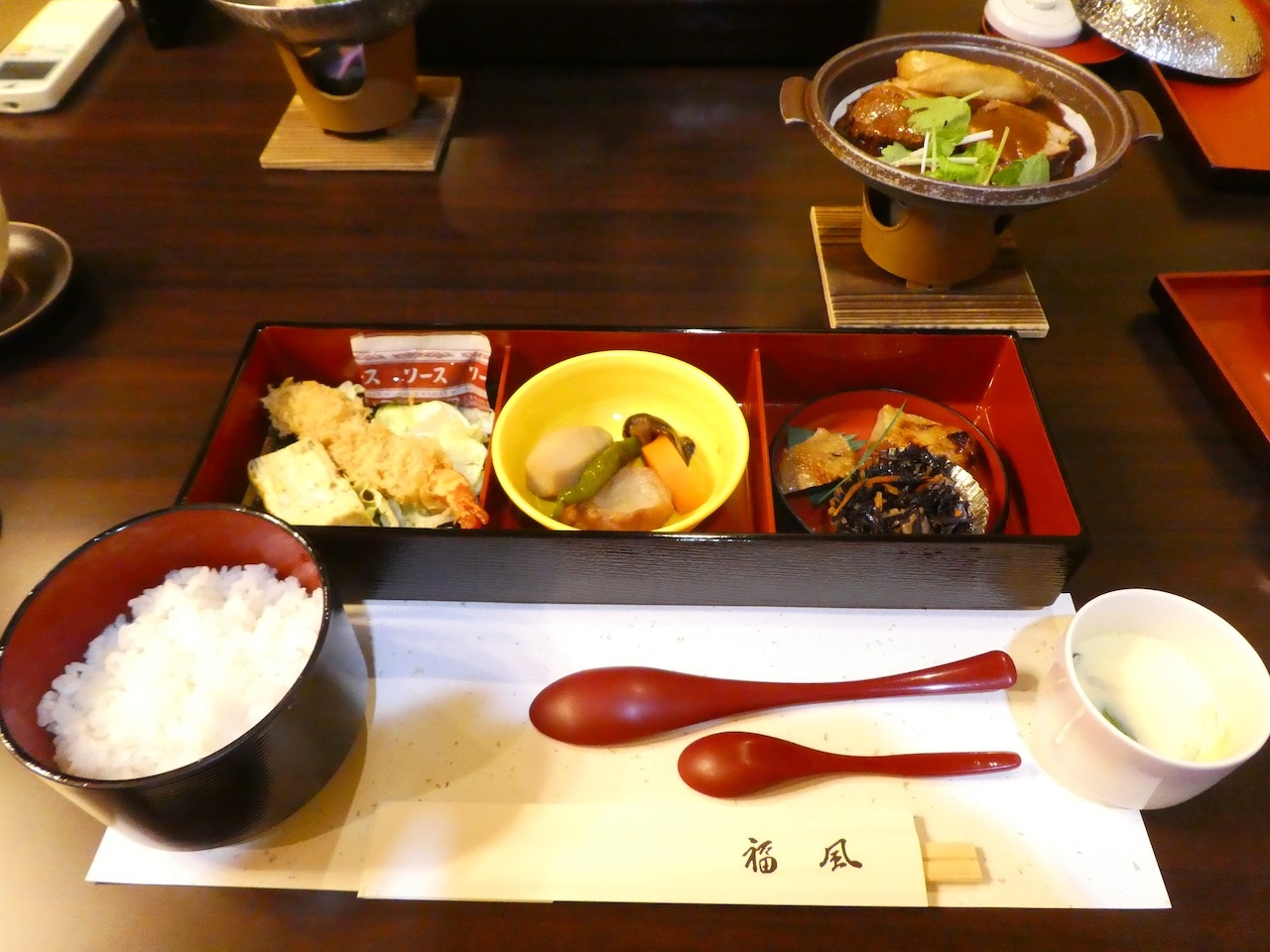 体験宿泊なので、自分で夕食を用意せずとも仕出しの料理で2食つきます。夕食は暖かい料理なのでなかなかよかったです。