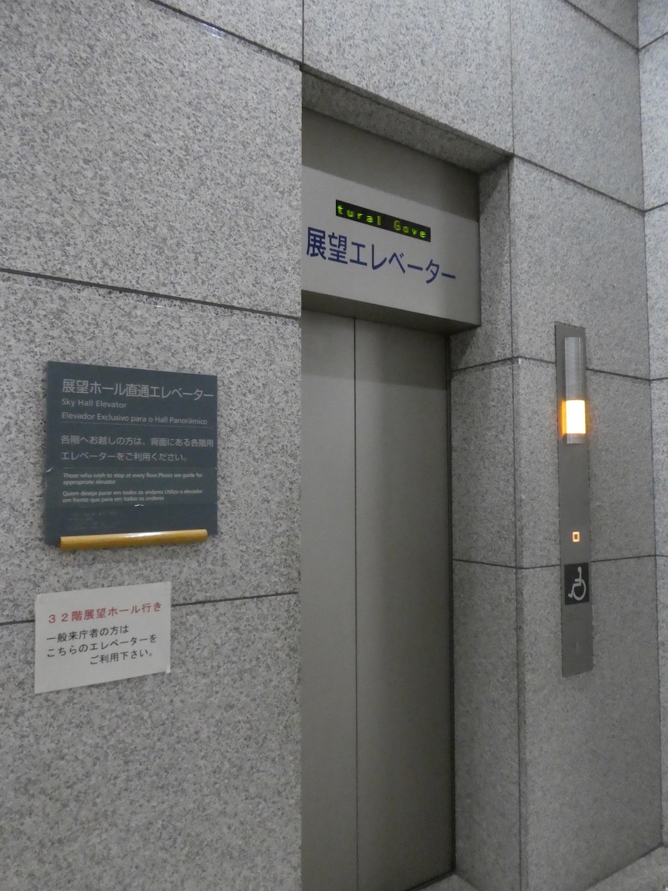 展望台へはエレベータで一気、ですが、西側だけ展望台がないので、エレベータでしっかりみておきましょう。