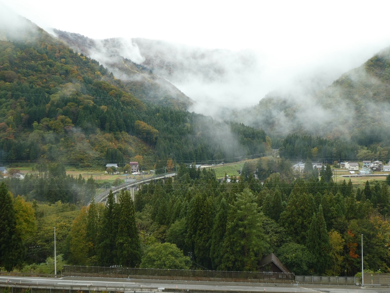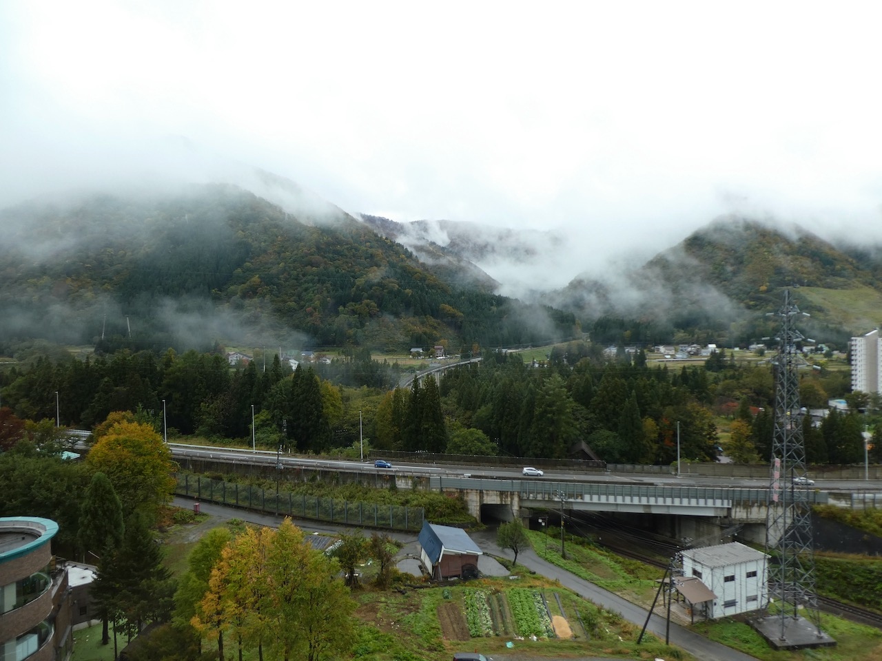 さて、群馬側の「湯檜曽ループ」は車窓からでも簡単に眺められるので人気ですが、一見わかりにくい新潟側の「松川ループ」を見てみました。宿泊した越後中里の「エンゼルグランティア」の窓からループ線のある山が見えます。残念ながら山陰で中腹の線路は見えませんが地形を見て全体像をつかむことができました。- 旅行時期