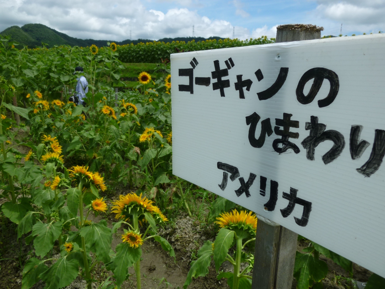 作用町では あちこちにひまわり畑が広がり、7月初旬より 8月中旬にかけて 時期をずらせて 植え付けしてるので、長い時期 ひまわりが咲いてるのをみることができる。でも メインは ひまわり祭りの行われてる時期 駐車場がグランドにつくられていて メイン会場では ひまわり迷路がある。大人も子供もかなり楽しく 自分より背の高いひまわりにかこまれ 迷路を散策できる。ひまわりの種や ポットに植え付けられてるひまわりをいただいて 家で育てる楽しみもある。暑い時期なので 道にはテントが張られ、いすも用意してくださってるので 休み休み 回れる。大きなひまわりの花に元気をもらって 世界のいろんなひまわりも 中学生が植えてくれてるので 色の変わったひまわりや ゴッホが絵を描いたひまわりもあり、興味をひかれる。ひまわり見た後の カキ氷は格別です