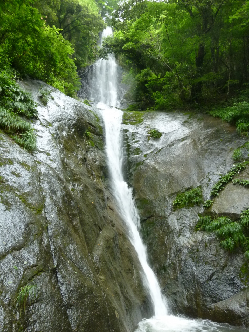 国道9号線を鳥取方面に走り ループ橋を過ぎてしばらく走ると 猿尾滝の案内が見える。横道に入ってしばらく行くと 駐車場。車を止めて、1分も歩くと 遠景に猿尾滝の全景が見える。ここまでは バリアフリーだが ここからは 川の流れに沿って 5分ほど歩くと しっかりと 滝の姿が見える 上段と下段の2段になっていて 階段を上がって 上段の滝近くに行くと 水しぶきもかかる。水が流れる岩肌が 仏像の形にみえなくもなく 不動尊として 信仰も集めてる。滝の流れが猿の尾に似てるので 猿尾滝の名前がついたとか。
