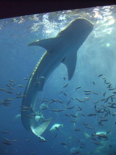 大きな水槽にジンベイざめが 3頭泳いでいるのは 圧巻です。マンタもゆっくりと 回遊してます。ジンベイざめのえさやり時間は決まっているが、是非それを見てほしい。3頭が縦に伸び上がってえさをたべてる姿は感動です。まわりの海洋博公園もきれいで 海上に面白い形の伊江島が見れる。海の色もきれいで ゆっくりとした時間を楽しんでほしい場所です。