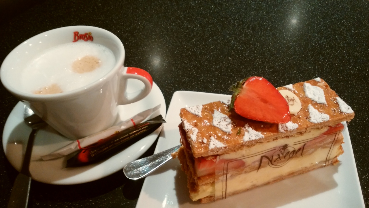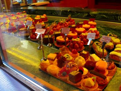 ショーウィンドウにはおいしそうなケーキやパンが並んでいて、お客さんがひっきりなしに訪れていました。イートイン用の席も少しあり、ちょうど席が空いたのでミルフィーユ4.3ユーロを食べました。見た目の期待値よりも、味は普通でしたが、海外のスイートにありがちな甘すぎることもなく、日本人の口に合うと思いました。- 旅行時期