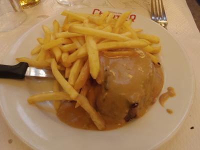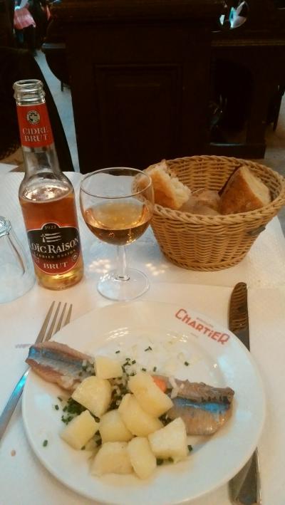 料理は、パリにしてはお手頃な値段だったので、前菜にニシンのマリネ、メインにステーキ、デザートにプリンを頼み、ドリンク1杯で21.3ユーロでした。味は素材の味がしっかりしており、量もそこそこあり、満足しました。