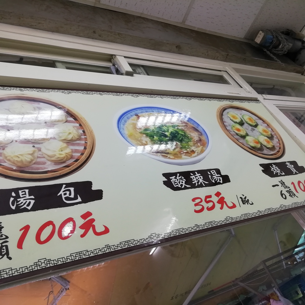 17時オープンちょうどくらいに入ったので、すぐに座れました。メニューは、小籠包100元、シュウマイ100元、酸辣湯35元のみで、小籠包と酸辣湯を頼みました。