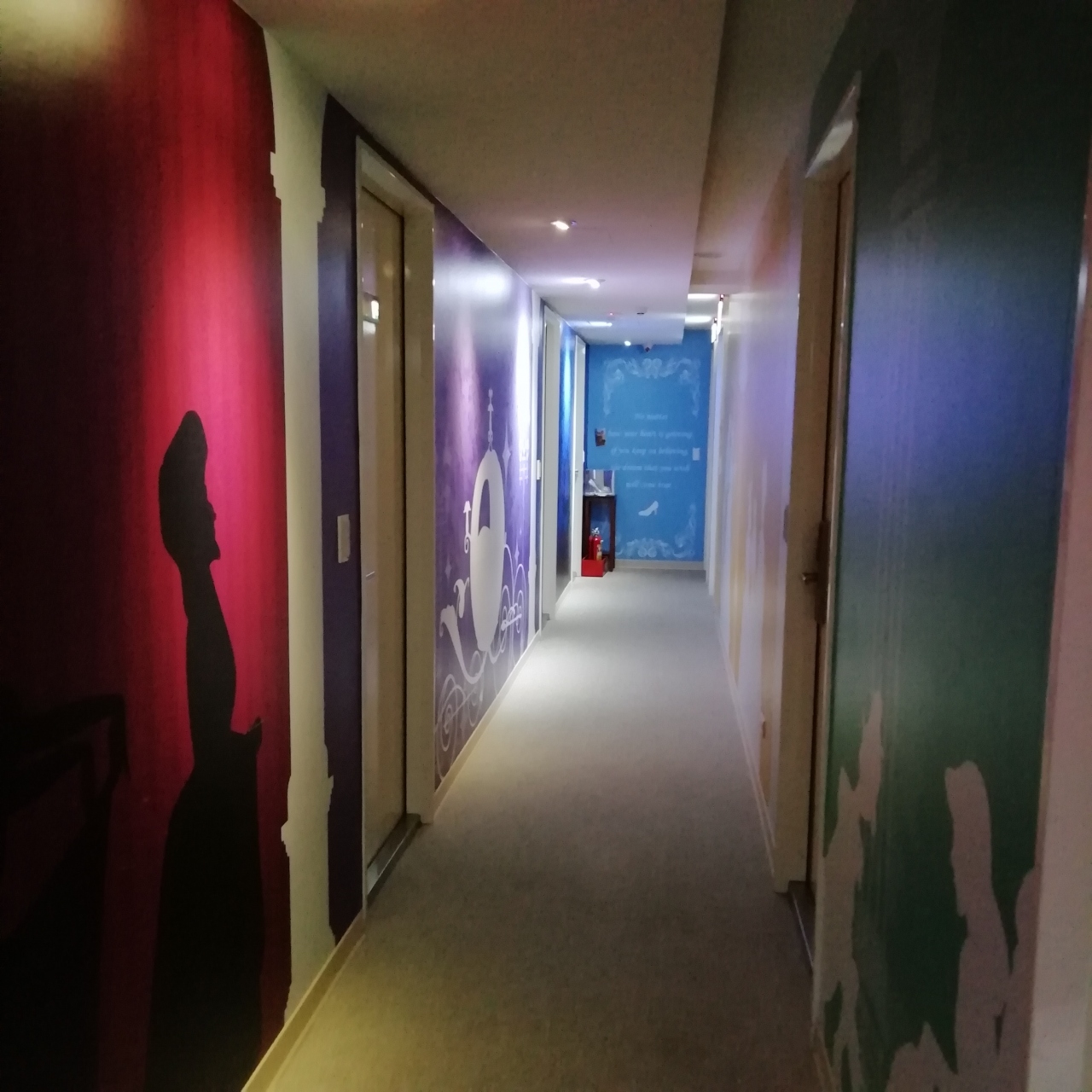 階ごとにおとぎ話のテーマが決まっているようで、私たちが泊まった階はシンデレラでした。部屋は、また違ったコンセプトでパリがテーマのようでした。寝るだけと割り切って、また可愛い部屋が好きという方にはいいかもしれません。