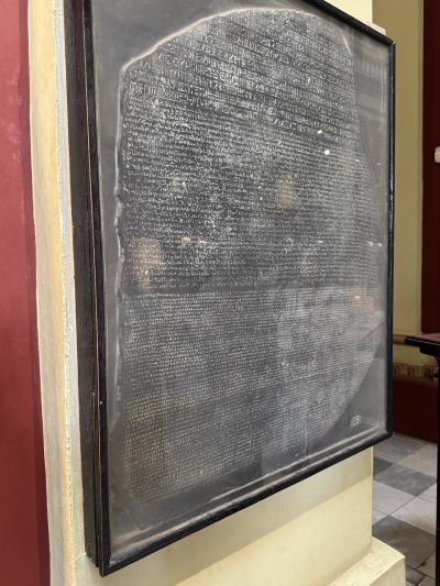 反対側にロゼッタストーン。唯一のレプリカですね。中は観光客でごった返し...