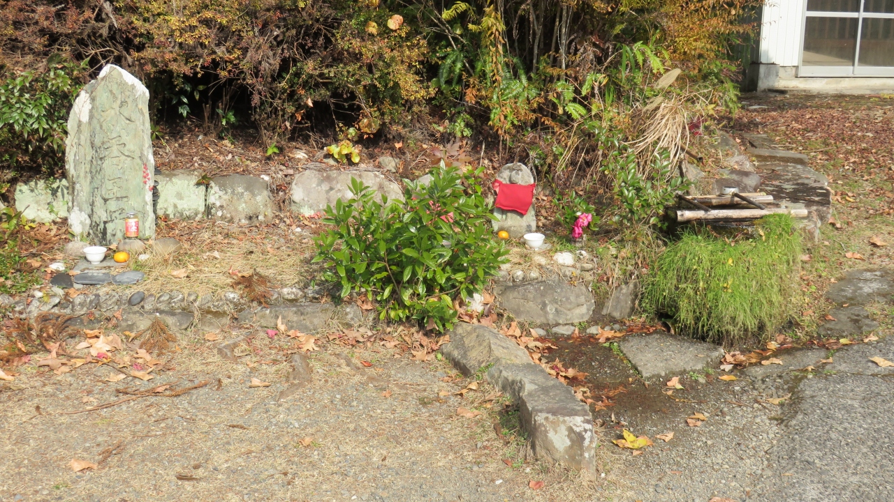 跡地の向かい側にはお地蔵さんと水くみ場があります。
