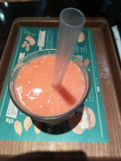 コーヒー以外にスムージーが数種類あったのでイチゴをチョイスしました。