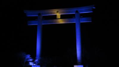 紫色に浮かびあがる大鳥居は日本で一番の大きさです。- 旅行時期