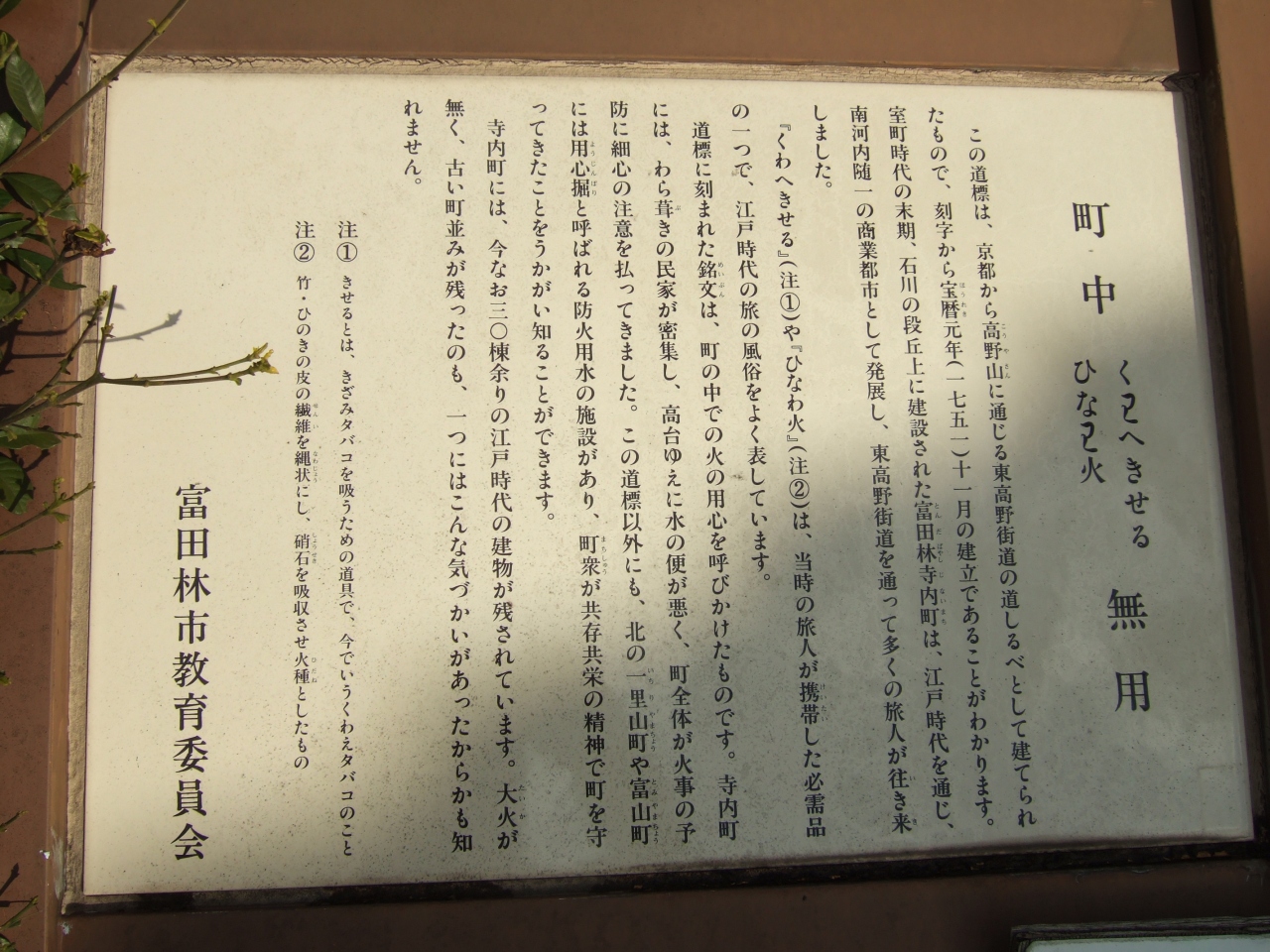 ここには「町中くわへきせるひなわ火無用」と彫られていて