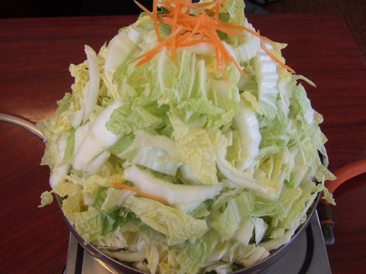 上手に盛り上げた白菜が鍋の上にたっぷりと入っていました。