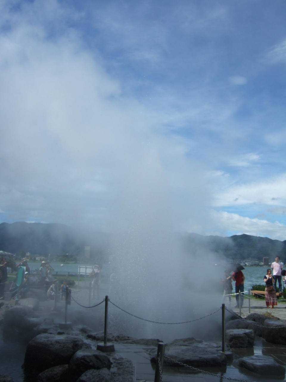 白い煙りと共にしぶきが出てきて天高く吹き上げる様は迫力満点です。