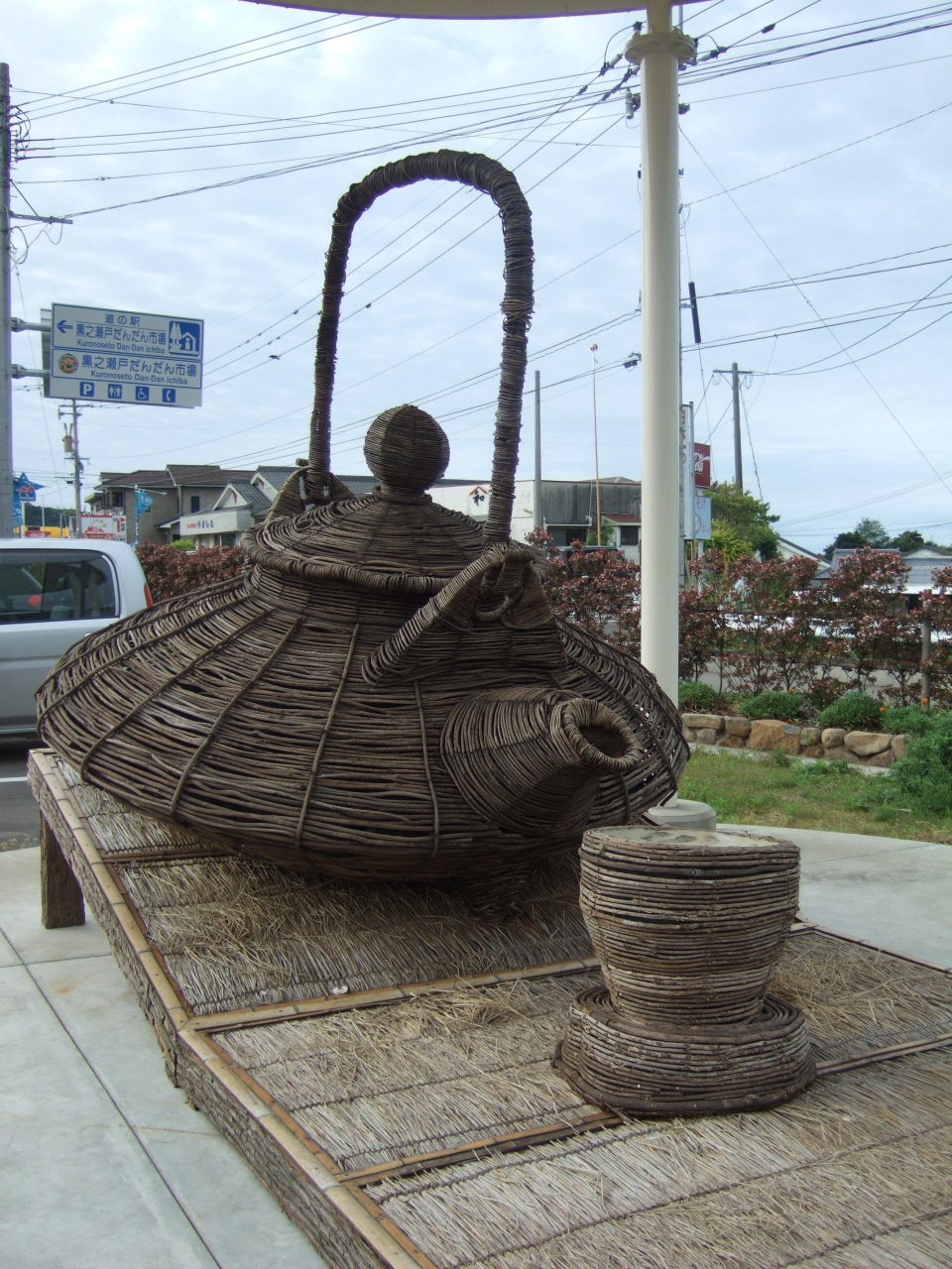 オブジェとして駐車場になぜか茶瓶と蜂の巨大な造形がありました。