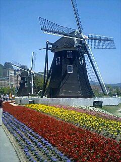 入り口はいると風車がありその周りにはお花がじゅうたんのように敷き詰められていました。