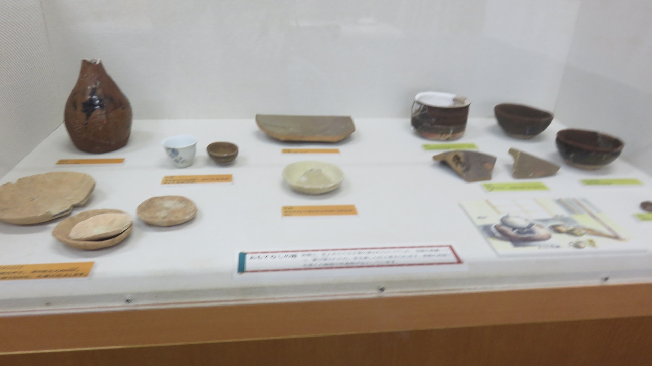 発掘された品は少しですが展示されています。紋のレプリカもありました。
