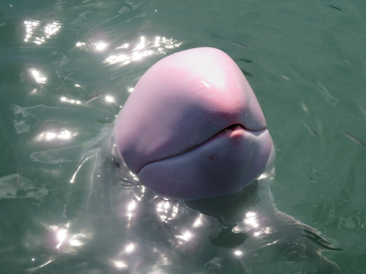 なんと、、ピンクの(白らしいですが・・)バンドウイルカを発見。