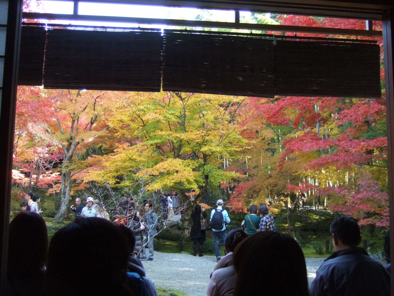 敷地内は紅葉一色で2つある家屋の中から庭園を見ると