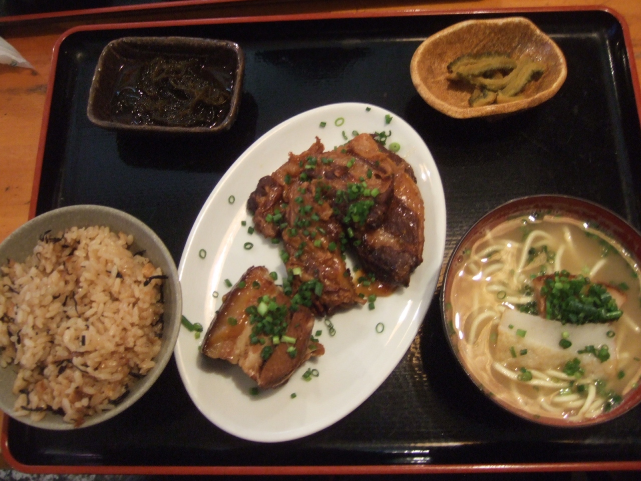 脂っこさもなくぺろっと平らげました。定食にはミニ八重山そばも付いています。
