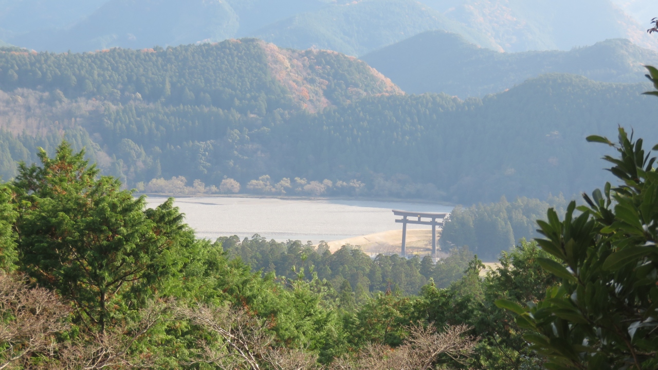 中辺路の途中には寄り道コースがあり、そこからは昔熊野本宮があった大きな鳥居が見下ろせました。- 旅行時期