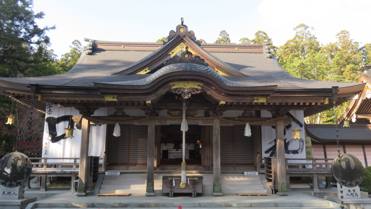 発心門王子から7キロ歩いてゴールが熊野大社でしたので着いた場所は本殿の裏側でした。