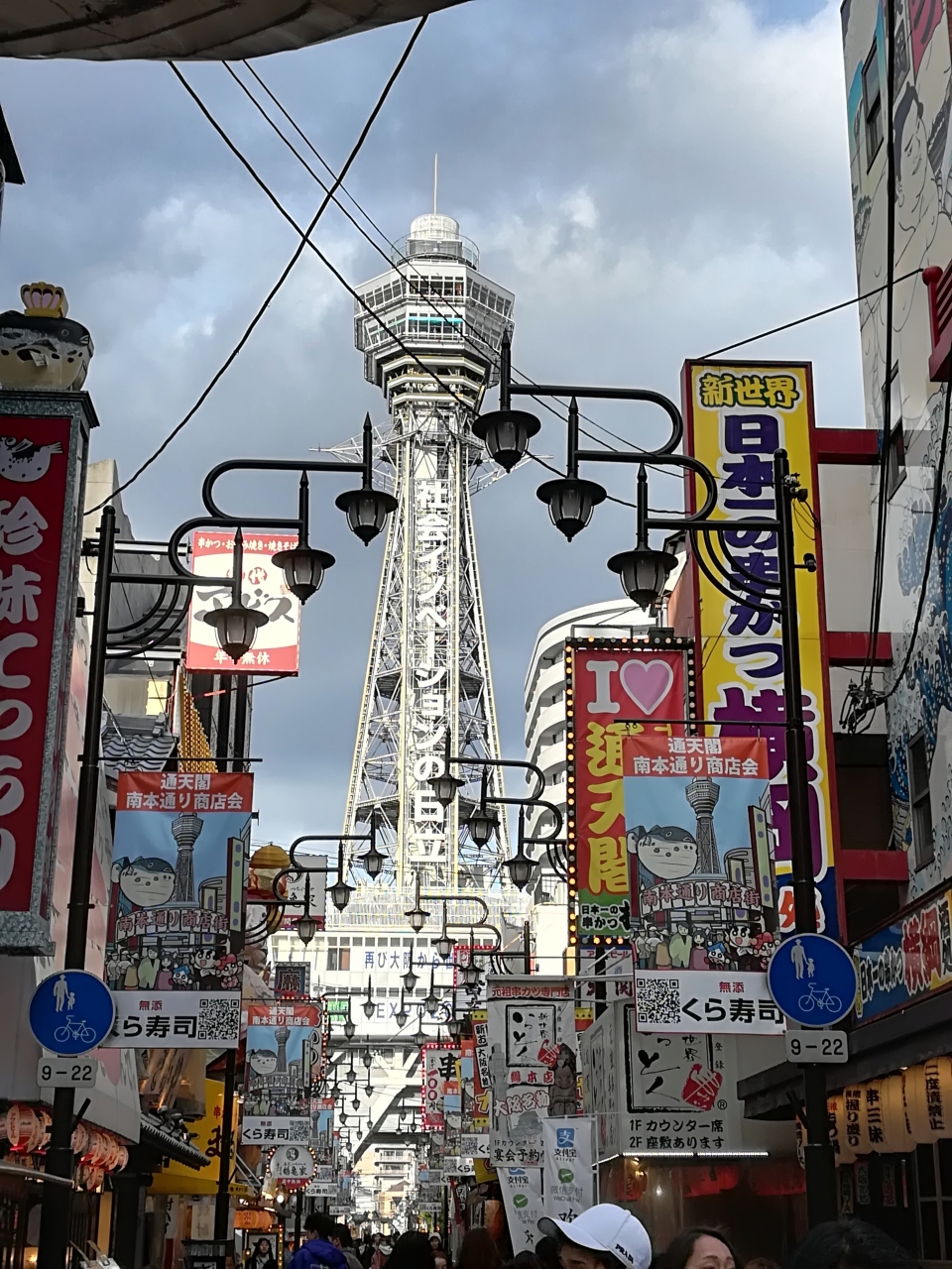 だるまの一筋商品西側の筋に行くと通天閣が眺められます。- 旅行時期