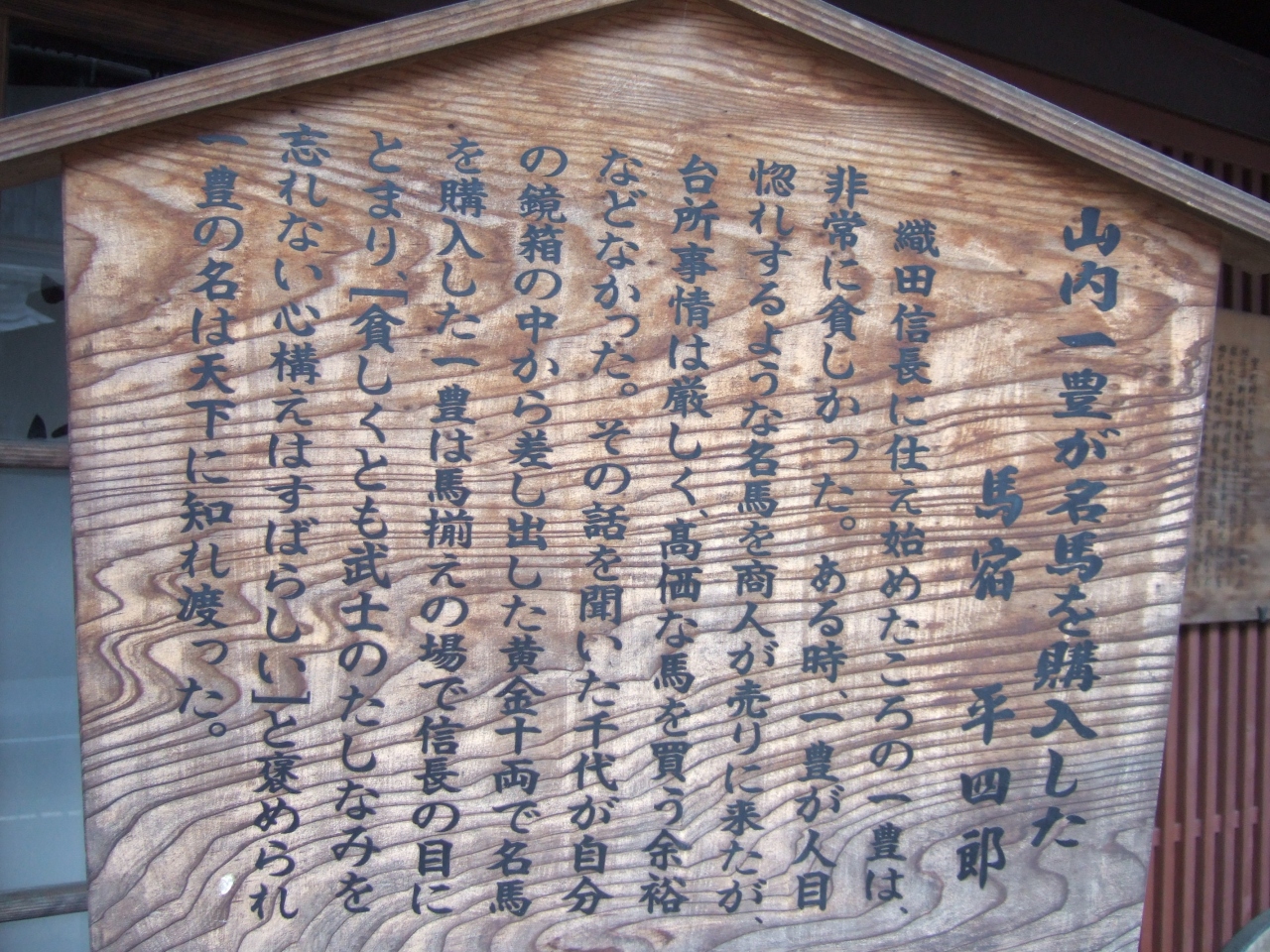 地元近江をはじめ、但馬・丹波・伊勢・美濃・越前・若狭などから数百頭以上の牛馬があつまり盛況を極めました。この牛馬市で、山内一豊の妻・千代は一豊のために名馬を購入したとありました。