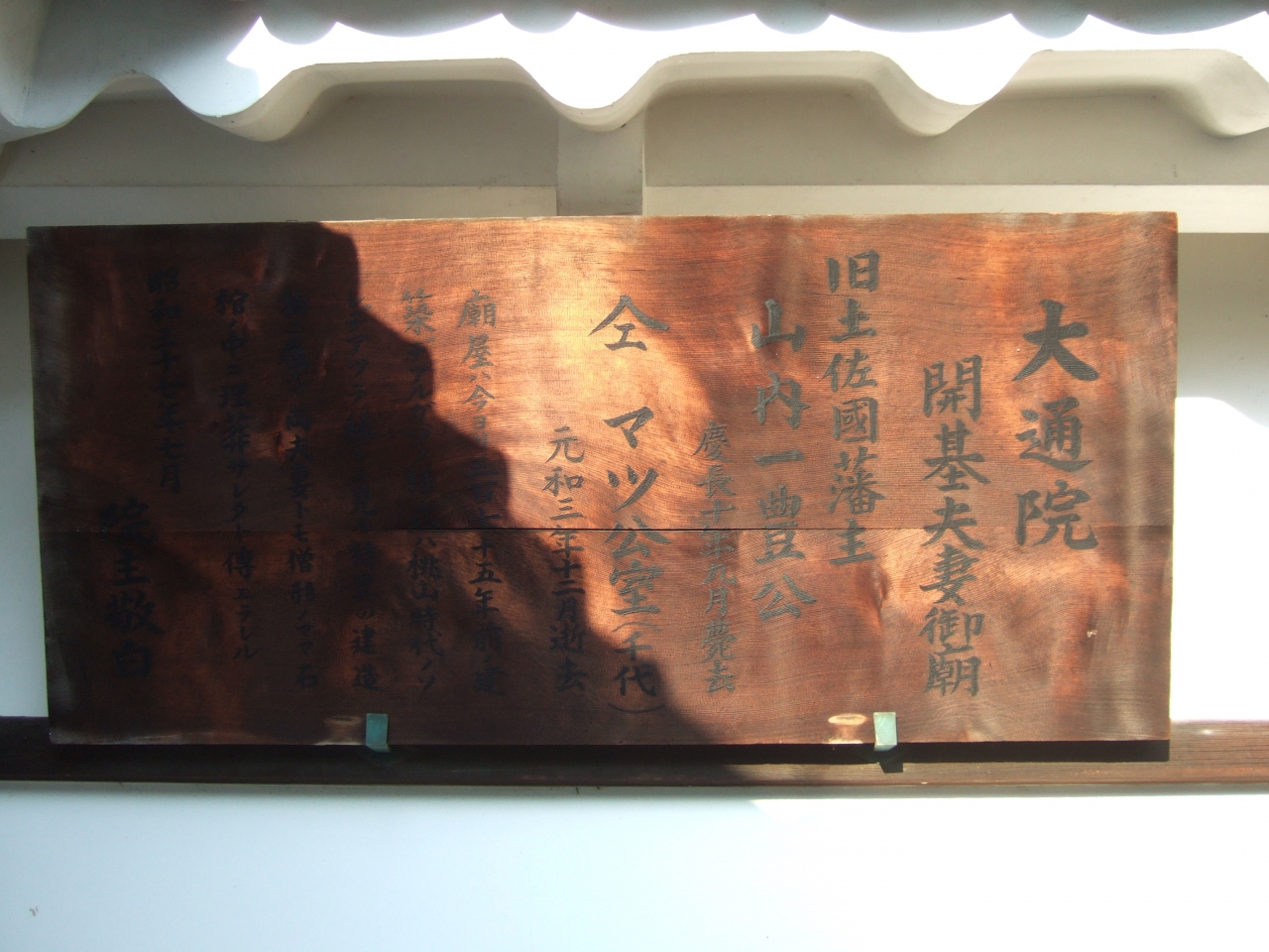 建物は桧皮葺で中には一豊と千代の家紋が掛けられています。- 旅行時期
