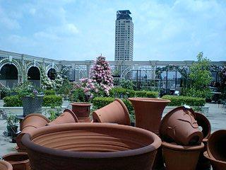 野外には外国製のプランターがランダムに置いていて人間がすっぽり入る大きいものまでありました。