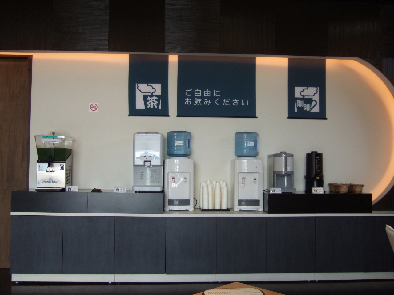 こちらの休憩所にはグリーンティー、アイスコーヒー、コーヒー、お茶が無料で頂けます。