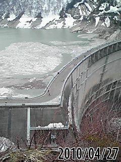 黒部ダムは氷が浮いていました。