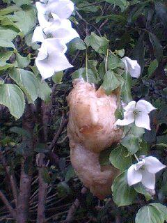 6月に行くと菖蒲園の隣の東屋の付近で白いドロッとした物体を発見しました。