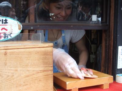 お店の前で一人で握られているのでお金の支払い方もユニークです。