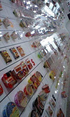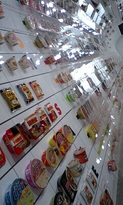 2階で三角巾(日清のひよこ柄)をもらいチキンラーメンの粉を混ぜ