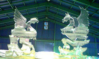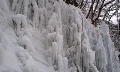 鍾乳洞を出て通路を歩いていると左側に氷の壁が見えます。