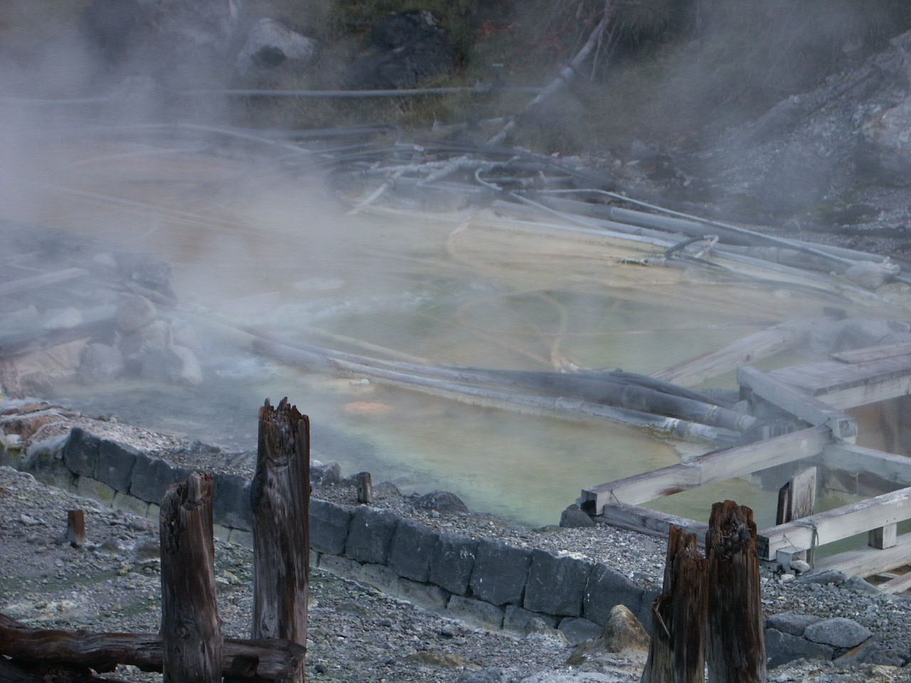 旅館の近くに硫黄が出ている箇所があり、そこにござを持っていき
